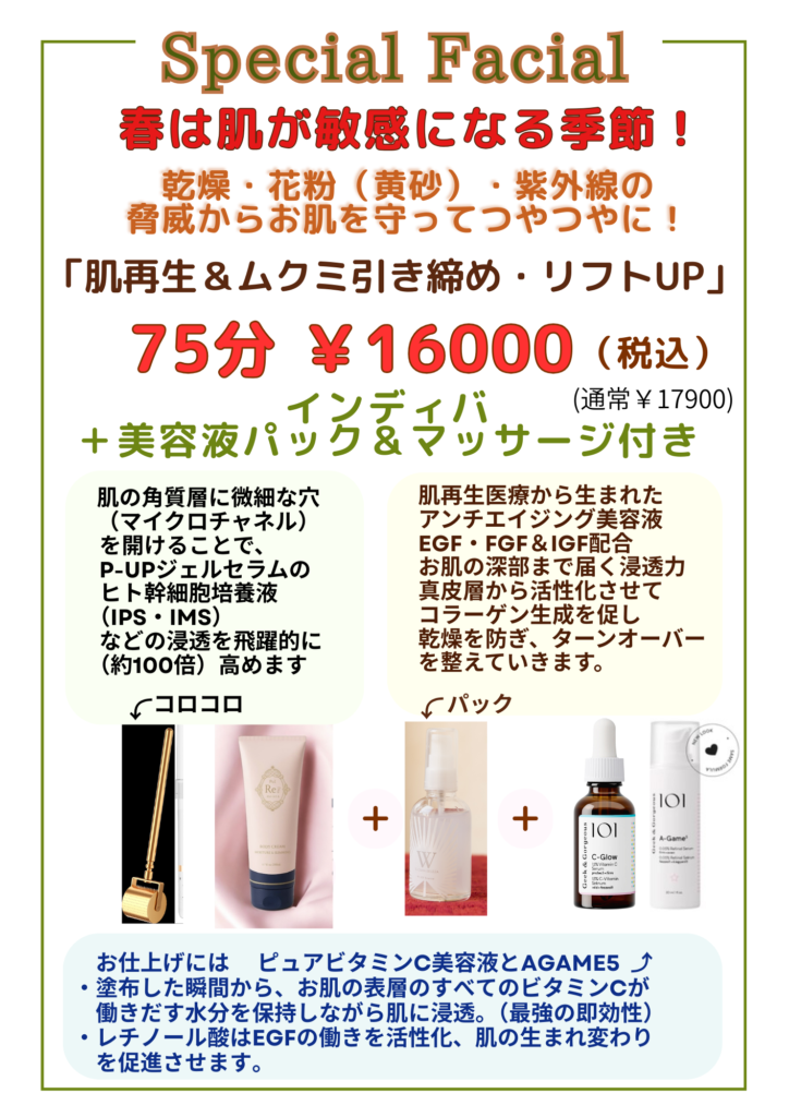 インディバフェイシャル+肩首頭マッサージ+最強美白美容液3種